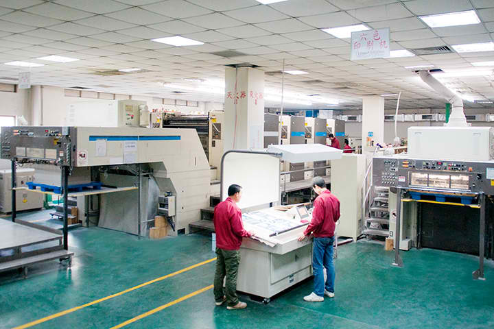 印后采用全自动上光机、全自动高速覆膜机、全自动裱纸机、全自动平札机、全自动折盒糊盒机流水线等,全流程的自动化设备。
